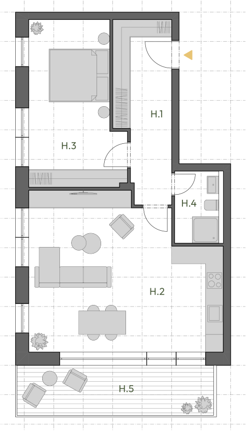 Prostorná jednotka s velkorysou obytnou plochou, která nabízí volnost při zařizování a pohodlné fungování každý den. Díky otevřenému konceptu snadno vytvoříte zóny pro odpočinek, práci i spaní podle vlastních potřeb. Venkovní prostor příjemně navazuje na interiér a poskytne místo pro relax. Umístění ve vyšším podlaží přidává více soukromí a klid.