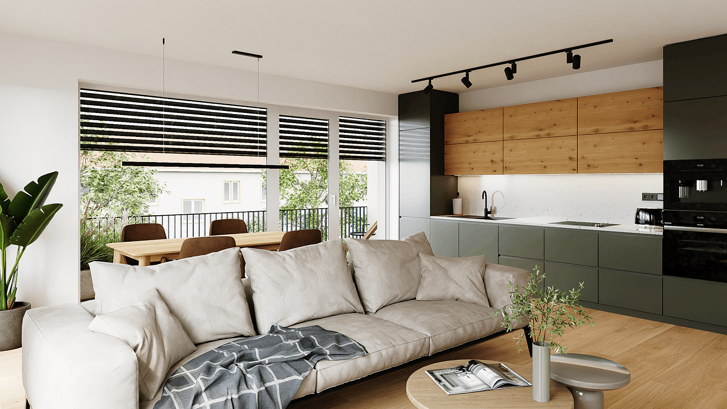 Byty nabízejí praktické dispozice, které kombinují prostor pro společné chvíle i dostatek soukromí. Komfortní standardy a příjemné prostředí zajišťují kvalitní a pohodlný život pro celou rodinu.